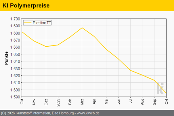 Die Lage war so wie im vergangenen Monat erwartet: Die Anbieter konnten sich dem Druck der schwachen Nachfrage nicht entziehen und mussten sich den Abschlagsforderungen beugen. Je einfacher die Type war, umso höher fielen die Nachlässe aus. Trotz aller Drosselungen stiegen die Lagerbestände der Erzeuger weiter an und überschritten das Normalniveau mehr als deutlich. Nicht nur der Automobilsektor zeigte sich anhaltend schwach. Auch das E+E-Segment sowie die anderen Industriesektoren nahmen weniger ab als gedacht. Die erhofften Impulse im Umfeld der K-Messe in Düsseldorf blieben aus.