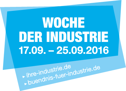 Das Bündnis „Zukunft der Industrie“, dem 15 Wirtschaftsverbände und Gewerkschaften sowie das Bundesministerium für Wirtschaft und Energie angehören, ruft Unternehmen zur Teilnahme an der bundesweiten Woche der Industrie auf, die vom 17. bis 25. September 2016 stattfindet.