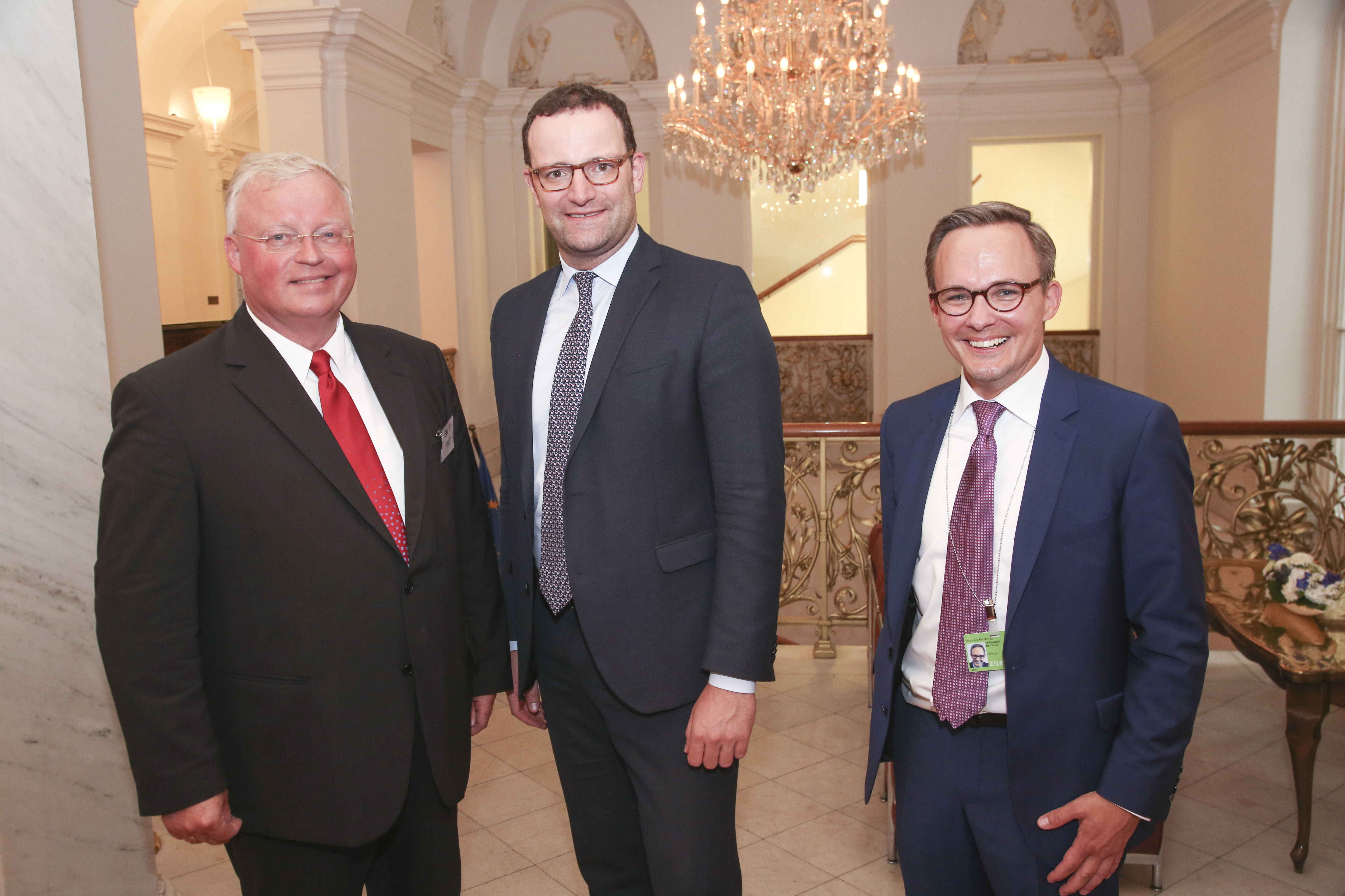 Bild (v.l.n.r.): GKV-Präsident Dirk E. O. Westerheide, Parlamentarischer Staatssekretär Jens Spahn, MdB, GKV-Hauptgeschäftsführer Dr. Oliver Möllenstädt